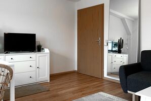 Die Ausstattung des Apartments umfasst ein gemütlichen Wohnzimmer, dieses ist mit einen Flachbild-TV, sowie einen Internetzugang via WLAN ausgestattet. Die Küche ist mit einer Kaffeemaschine (Filter), eine Toaster, Wasserkocher, einer Microwelle und einer Spülmaschine ausgestattet. Für längere Aufenthalte befinden sich auch ein Trockner und eine Waschmaschine in der Ferienunterkunft. Auch ideal für Geschäftsreisende.